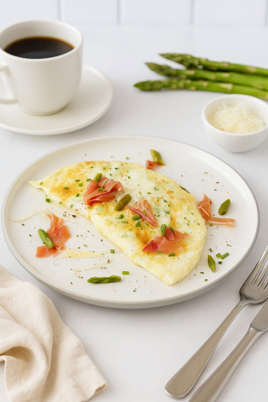 Diabetes-Friendly Fluffy Egg White Omelet with Prosciutto and Asparagus
