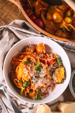 Simple and quick vegetarian low carb pasta dish.