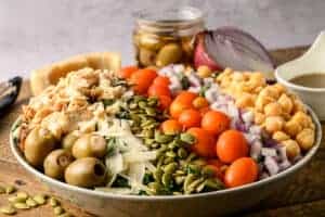 An easy, diabetes-friendly, copycat version of the Olive Garden’s famous starter salad.